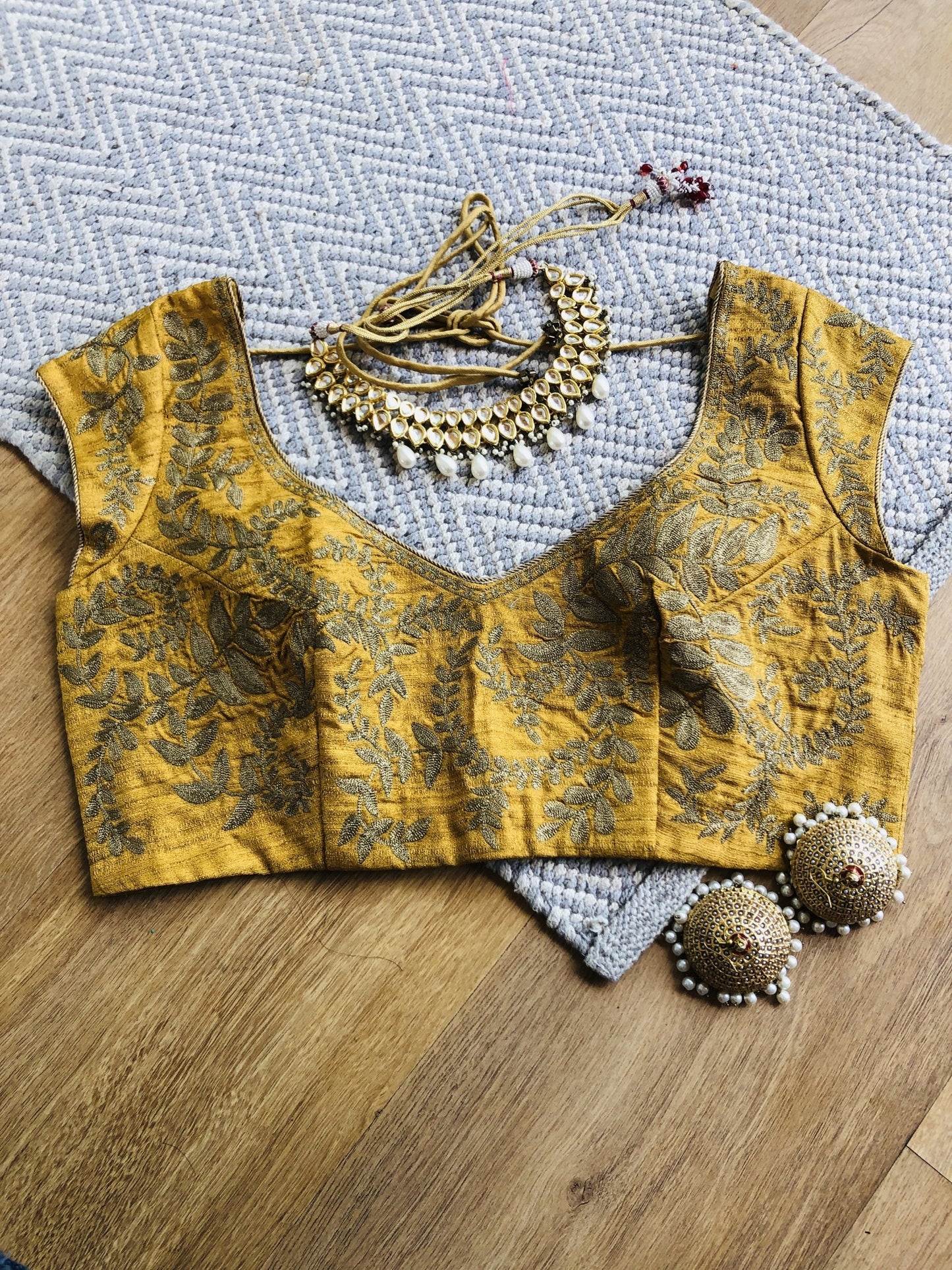 Mustard Yellow Zari Work Blouse - Vibrant Elegance with a Touch of Opulence