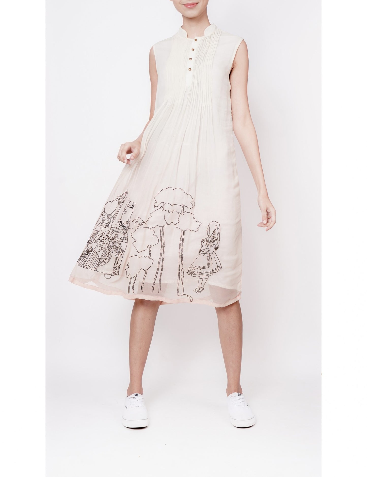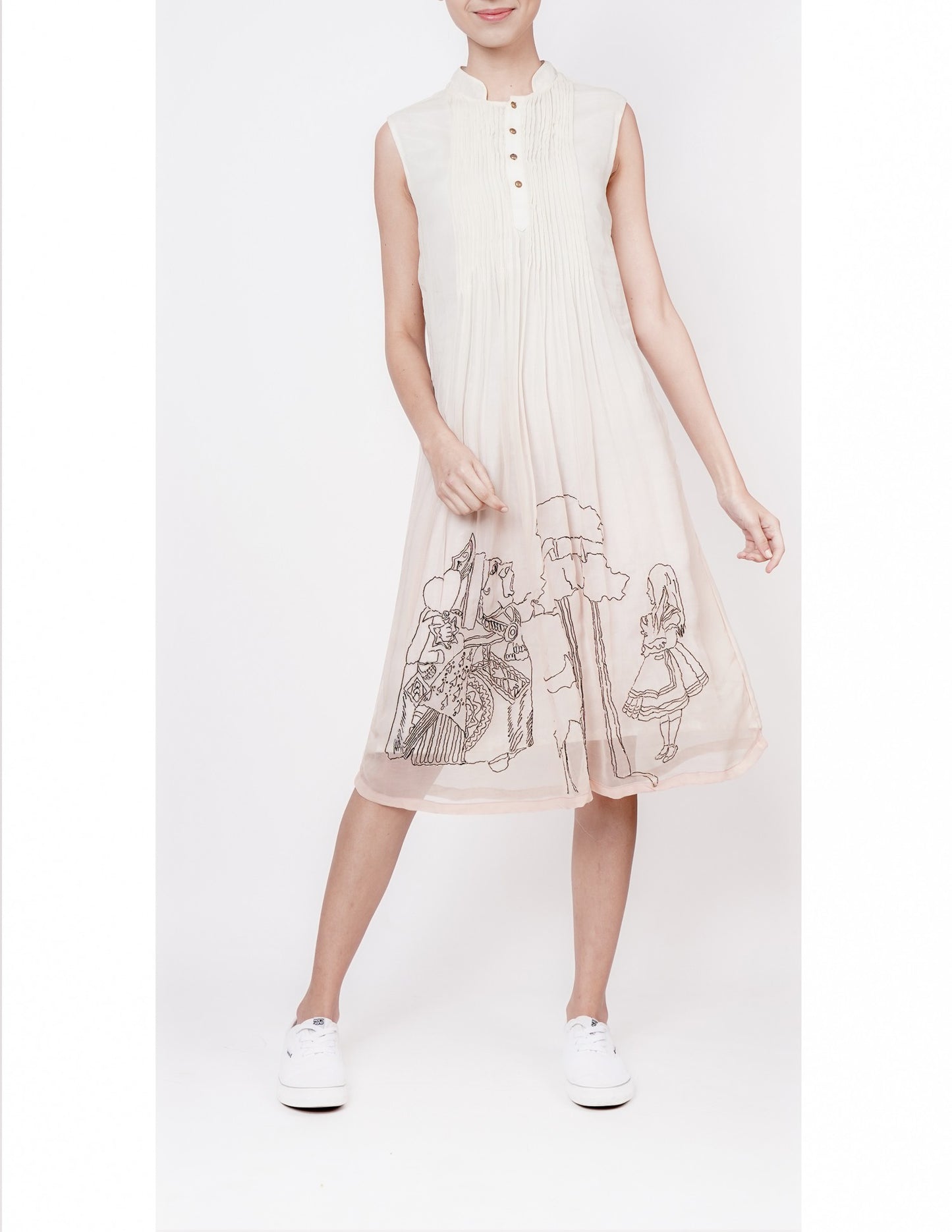 Soft White and Peach Ombre Top with Delicate Pin Tucks and Dori Embroidery - This charming top features a beautiful gradient of white and peach shades, paired with intricate pin tucks that add a touch of vintage elegance. The hemline is adorned with exquisite dori embroidery, creating a stunning contrast of texture and visual interest.