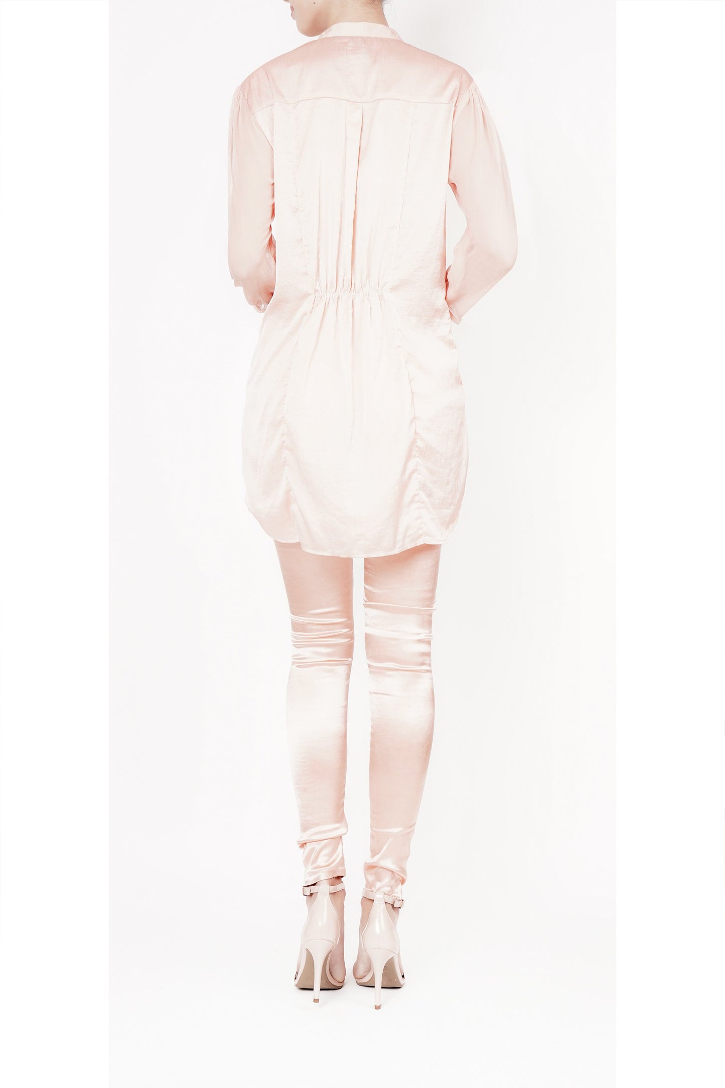 Make a stunning statement with this enchanting light peach satin chiffon tunic dress, expertly crafted to celebrate the beauty of art and nature. The Frieda Kahlo inspired embroidery at the hemline adds a touch of eclectic charm, while the flora and fauna motifs done in pastel resham threads create a whimsical effect. The satin chiffon fabric drapes elegantly, perfect for special occasions or adding a touch of bohemian glamour to your everyday look. The light peach hue and pastel threads evoke a soft, romantic feel, while the Frieda Kahlo inspired embroidery adds a bold, artistic touch. This tunic dress is a true masterpiece of craftsmanship and style.
