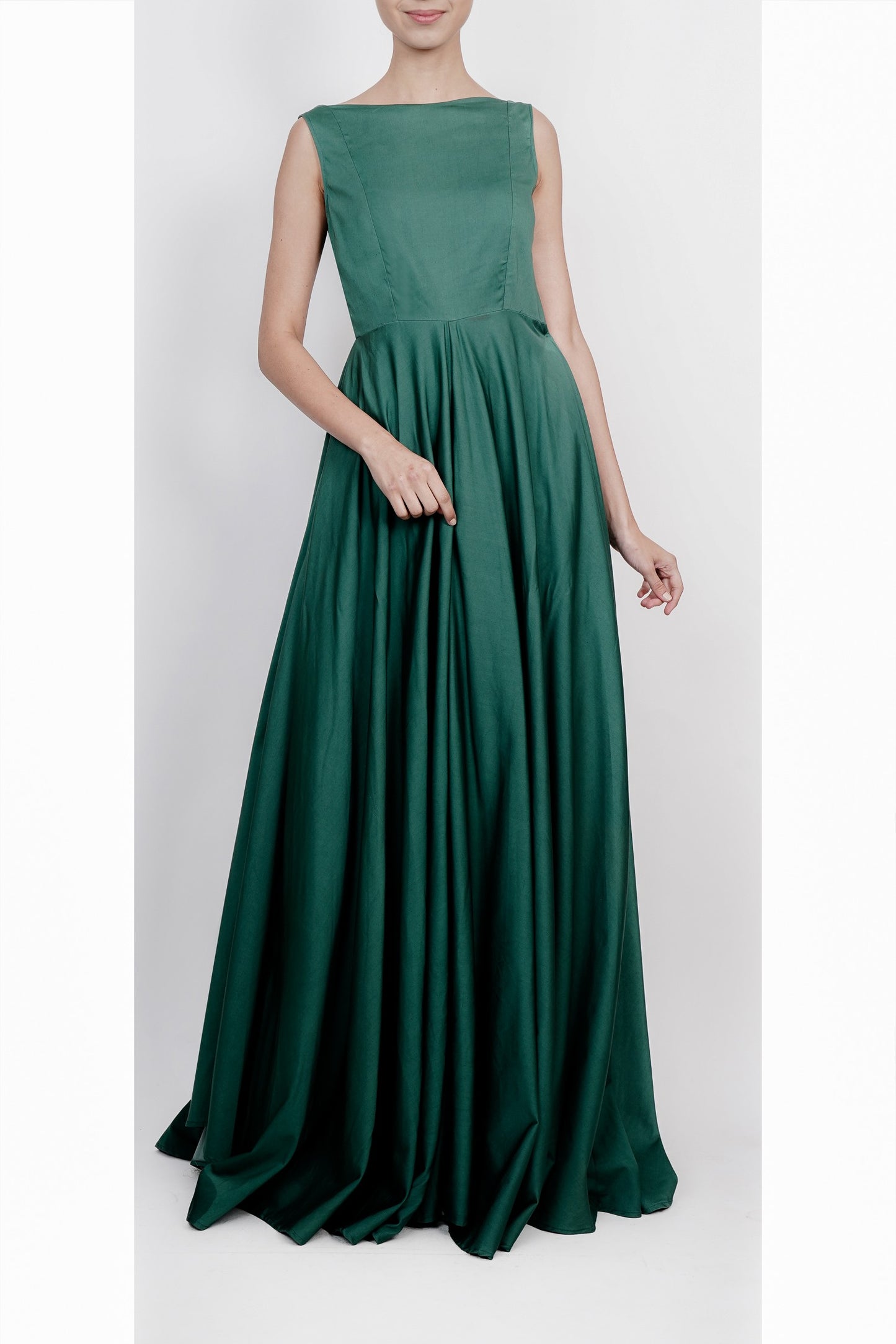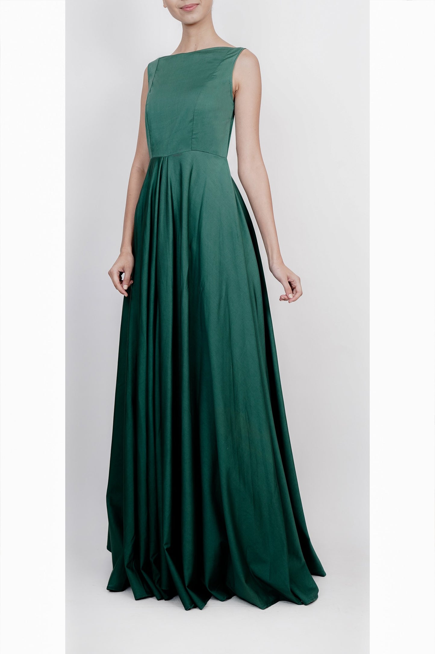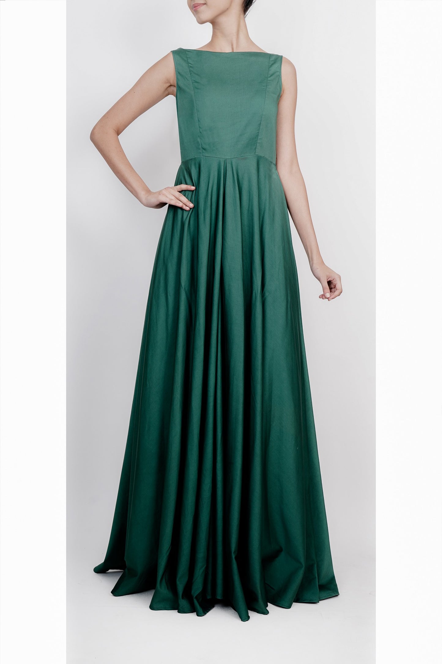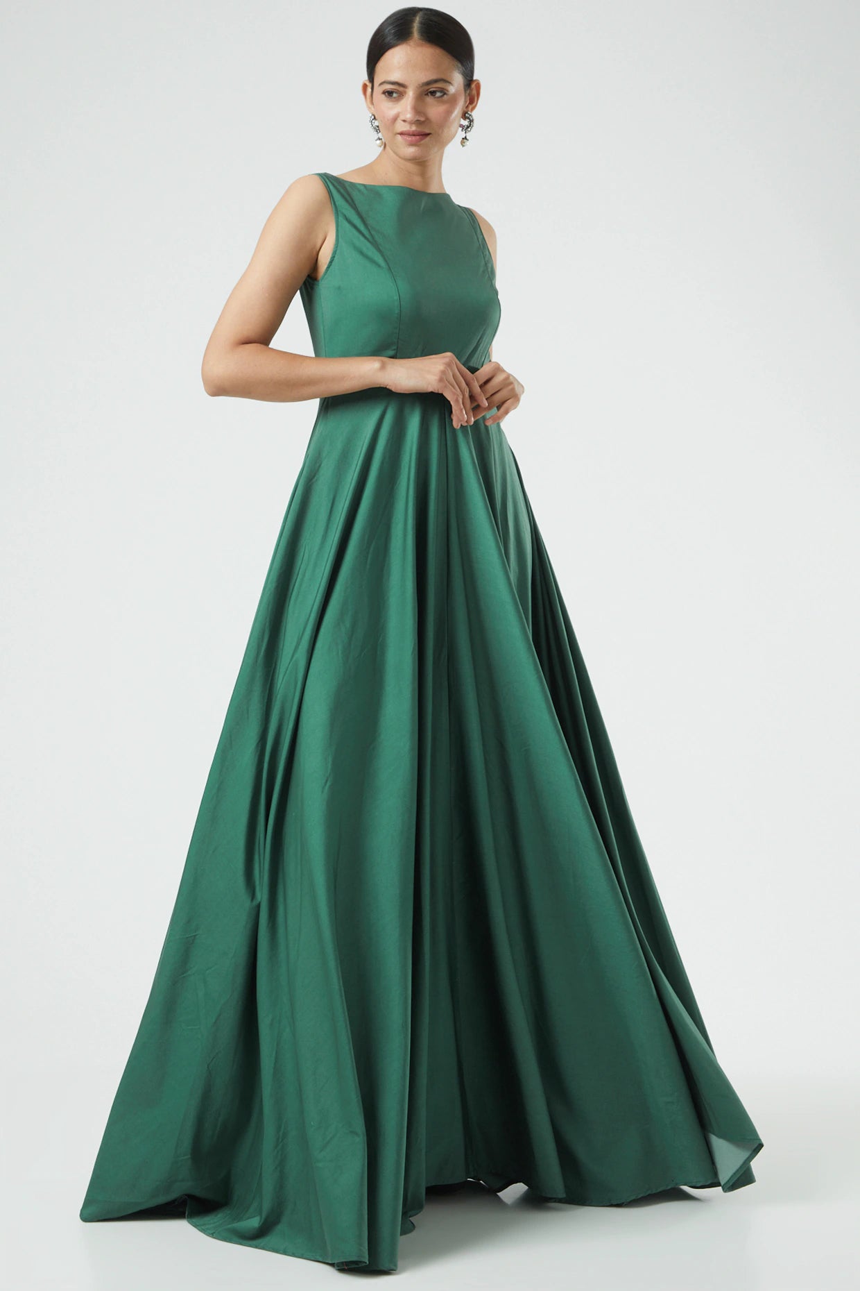 Make a dramatic entrance with this stunning Green long solid modal satin gown, expertly crafted to turn heads. The floor-sweeping design features a big flare at the hem, creating a breathtaking silhouette that exudes elegance and sophistication. The solid green hue adds a touch of luxury, while the modal satin fabric drapes beautifully on the body. Perfect for special occasions like weddings, formal events, and red-carpet appearances, this gown is sure to make you feel like a queen. Its classic design and timeless style ensure it will remain a wardrobe staple for years to come.