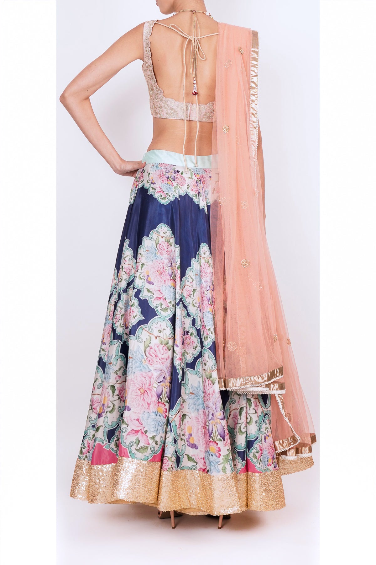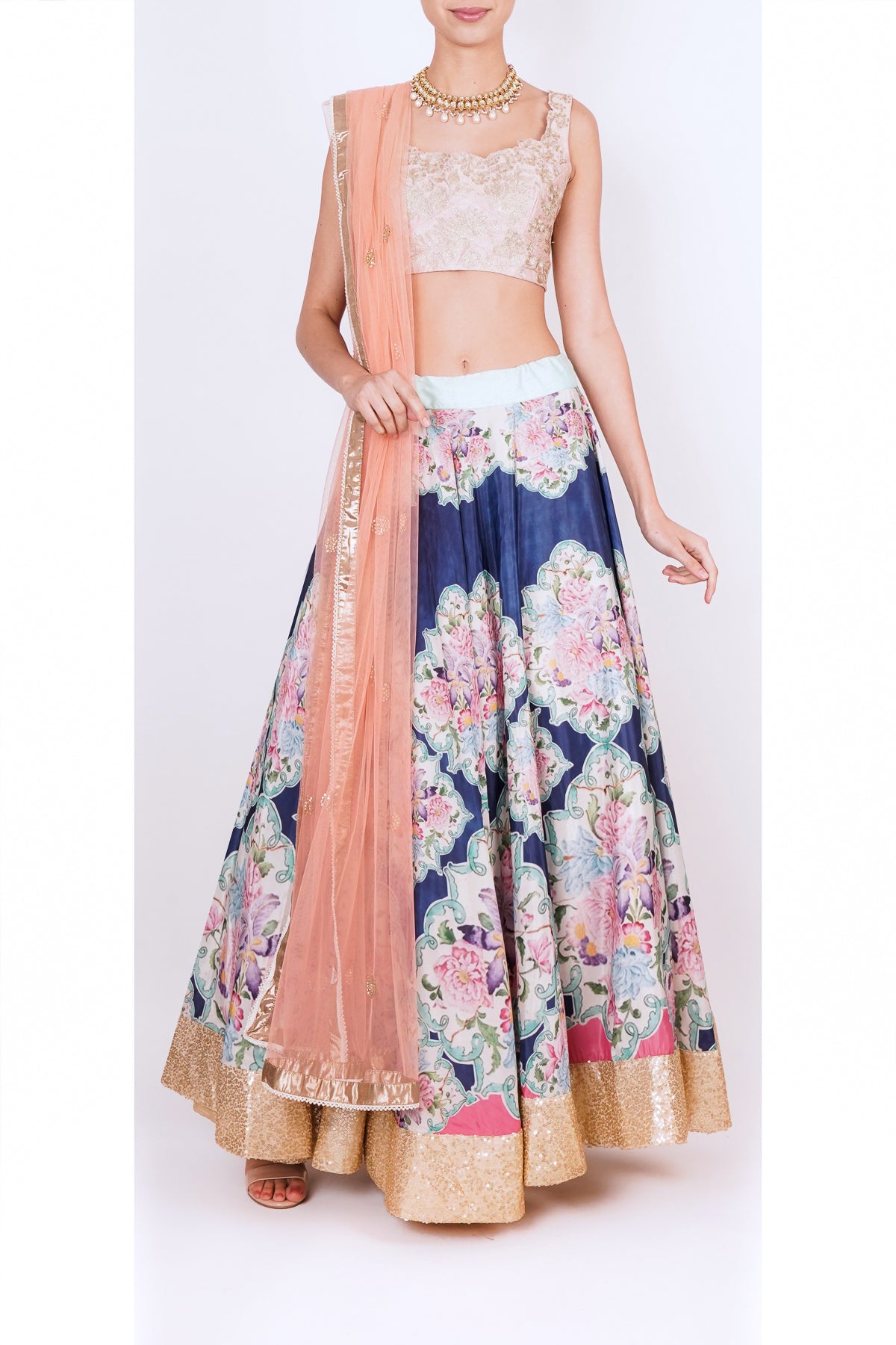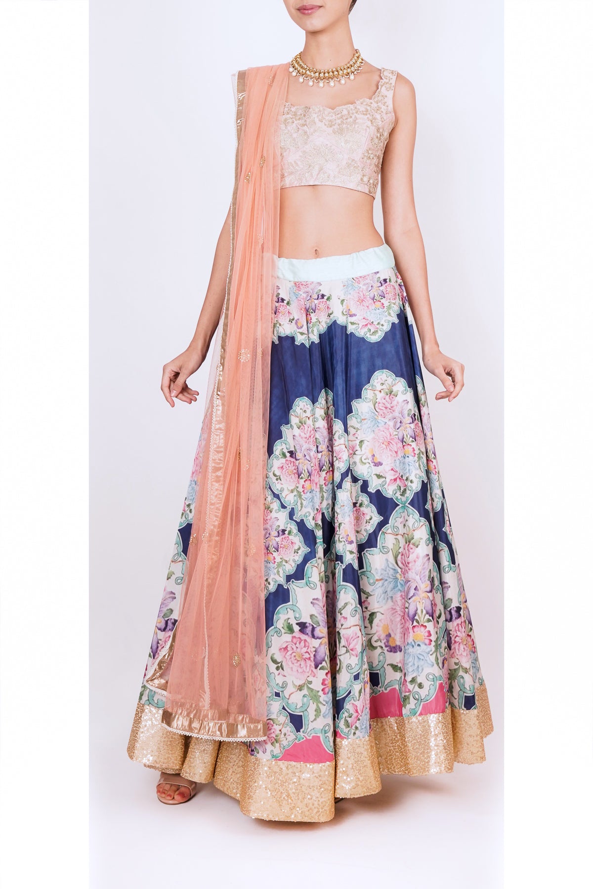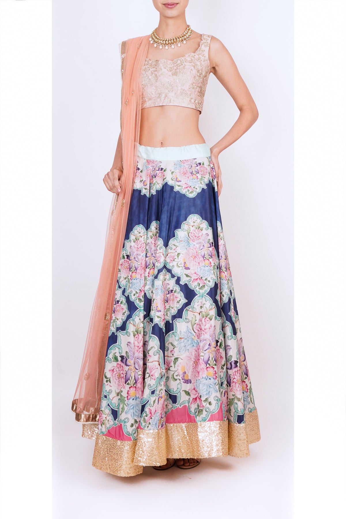 Bright blue floral lehanga set