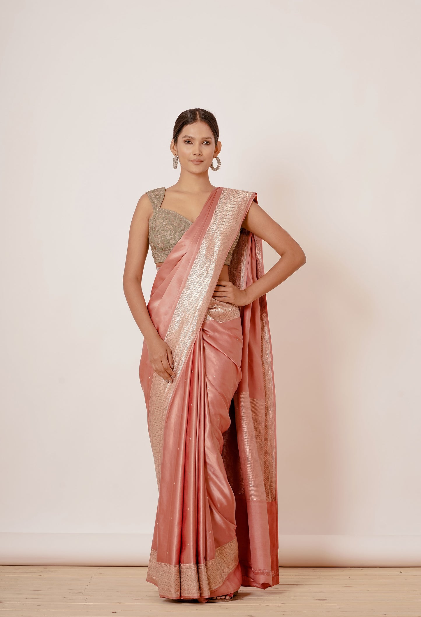 Dusty Peach Banarasi Handwoven Satin Silk Saree