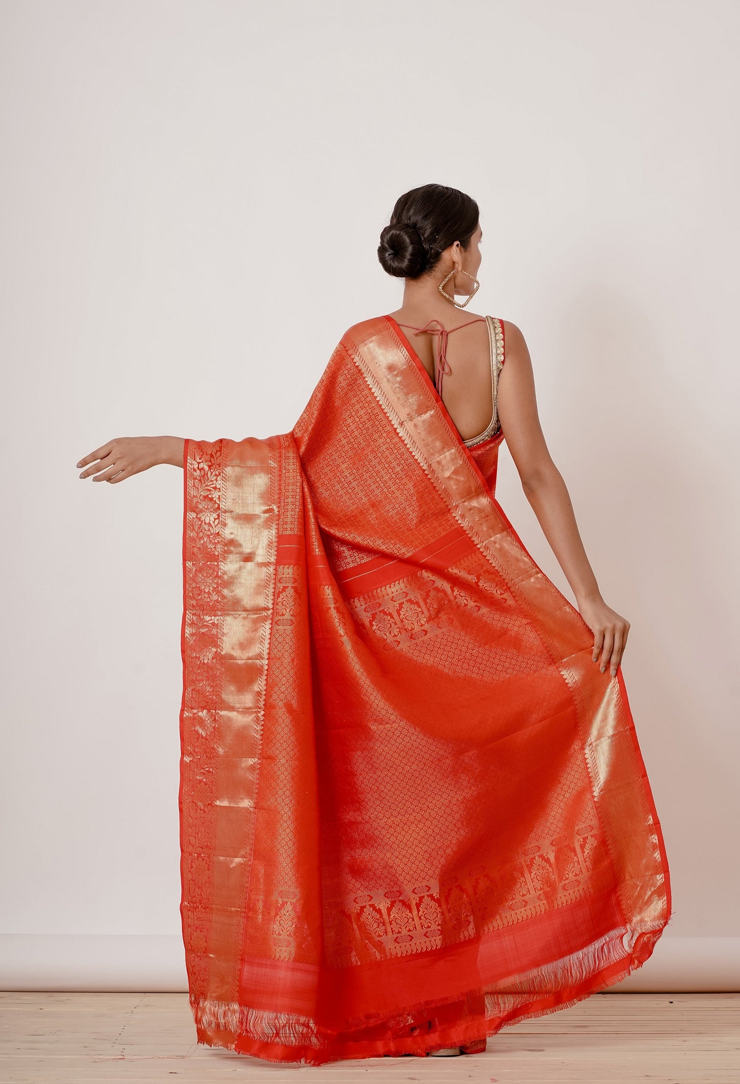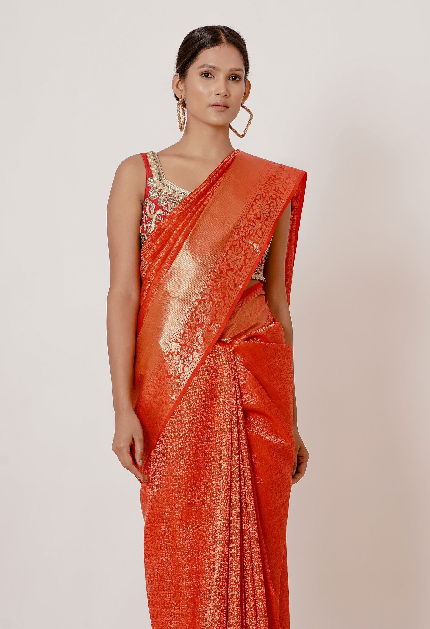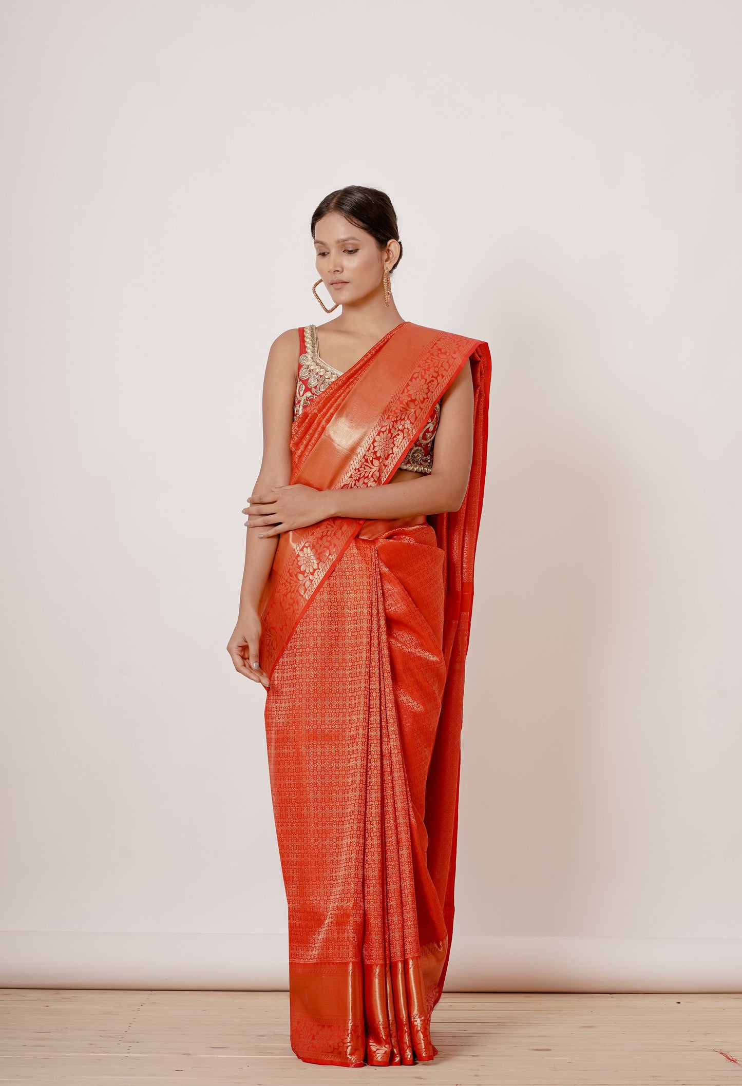 Red Dharamavaram Silk Saree with a Red Blouse