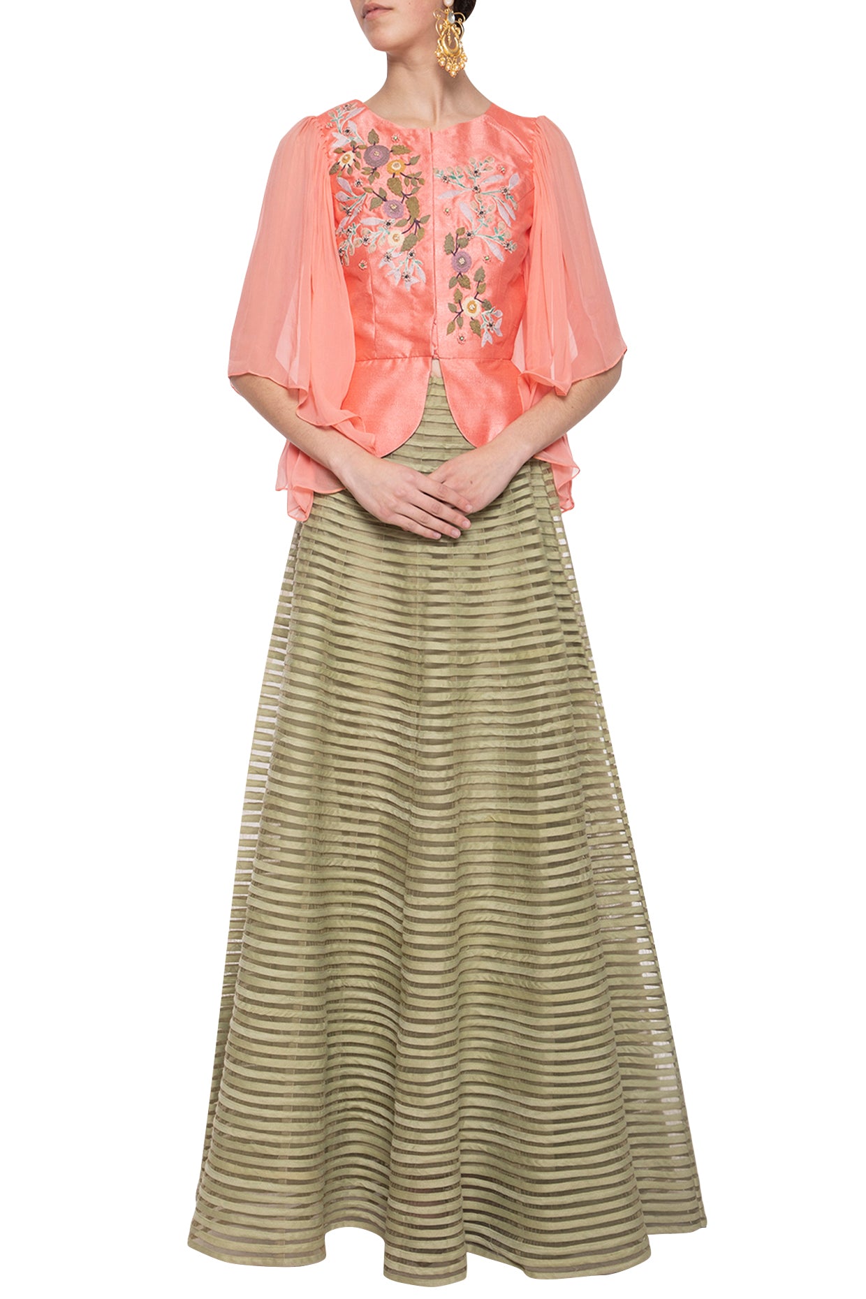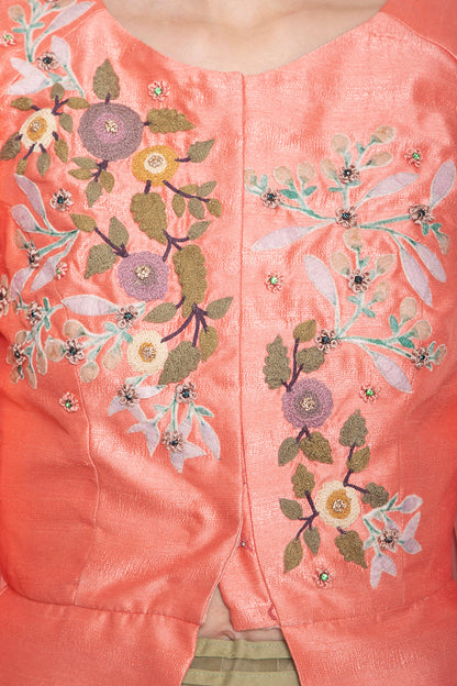 SKU:candy-pink-embroidered-jacket-with-green-skirt_XS