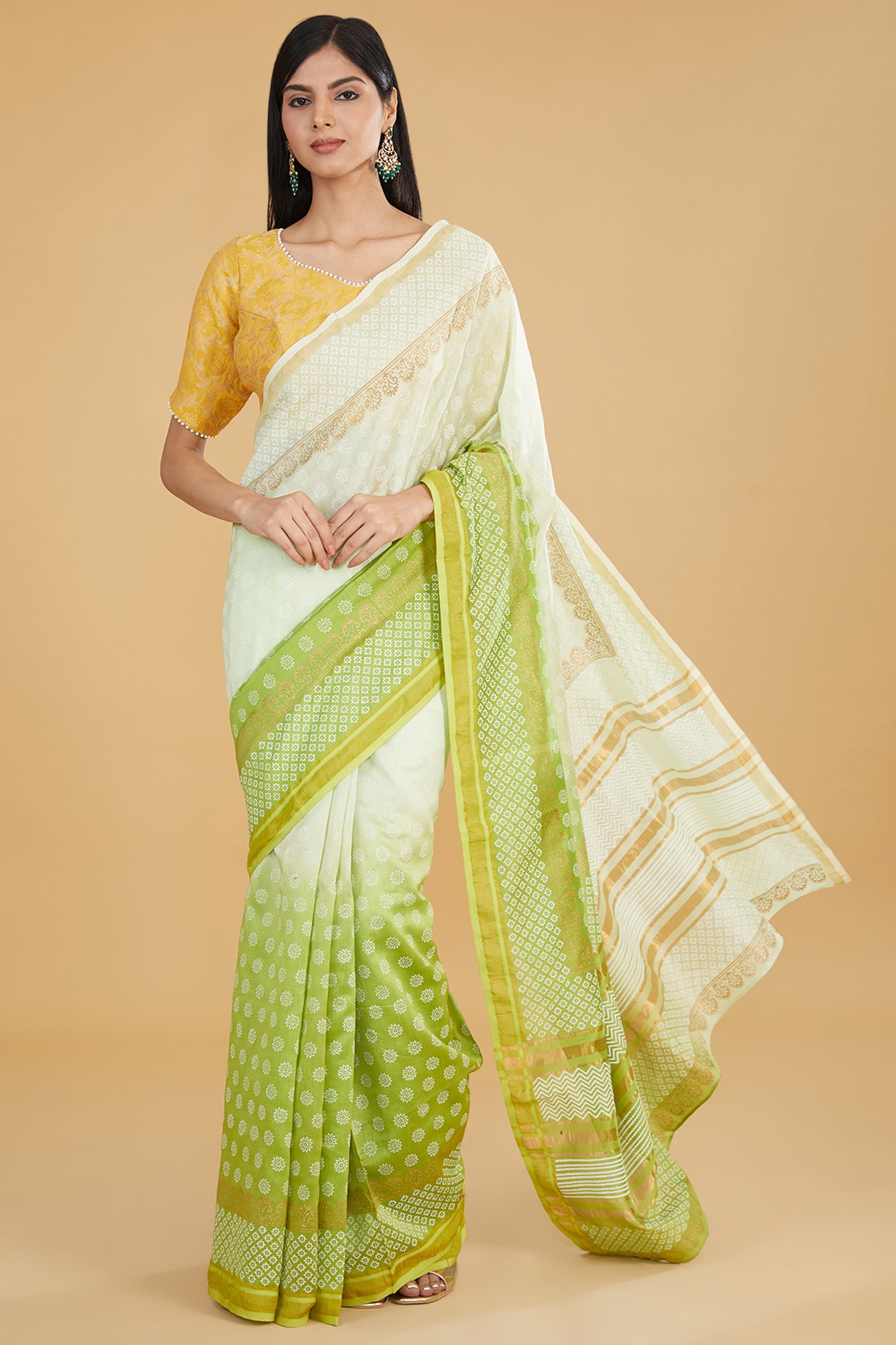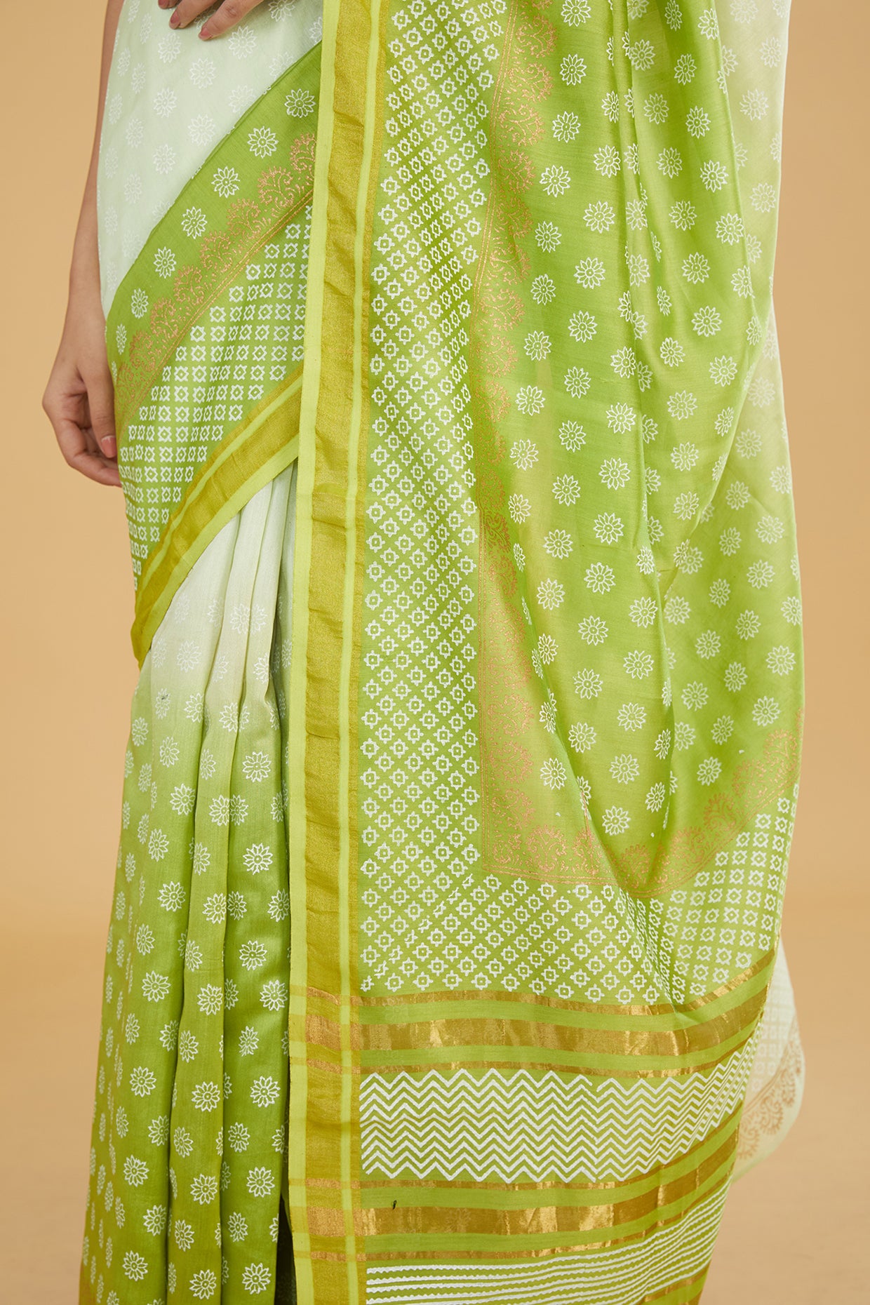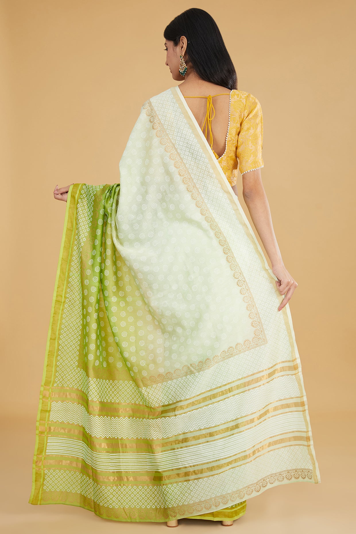 SKU:ivory-green-ombre-chanderi-saree-set_XS