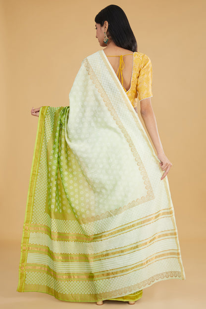 Ivory & Green Ombre Chanderi Saree Set