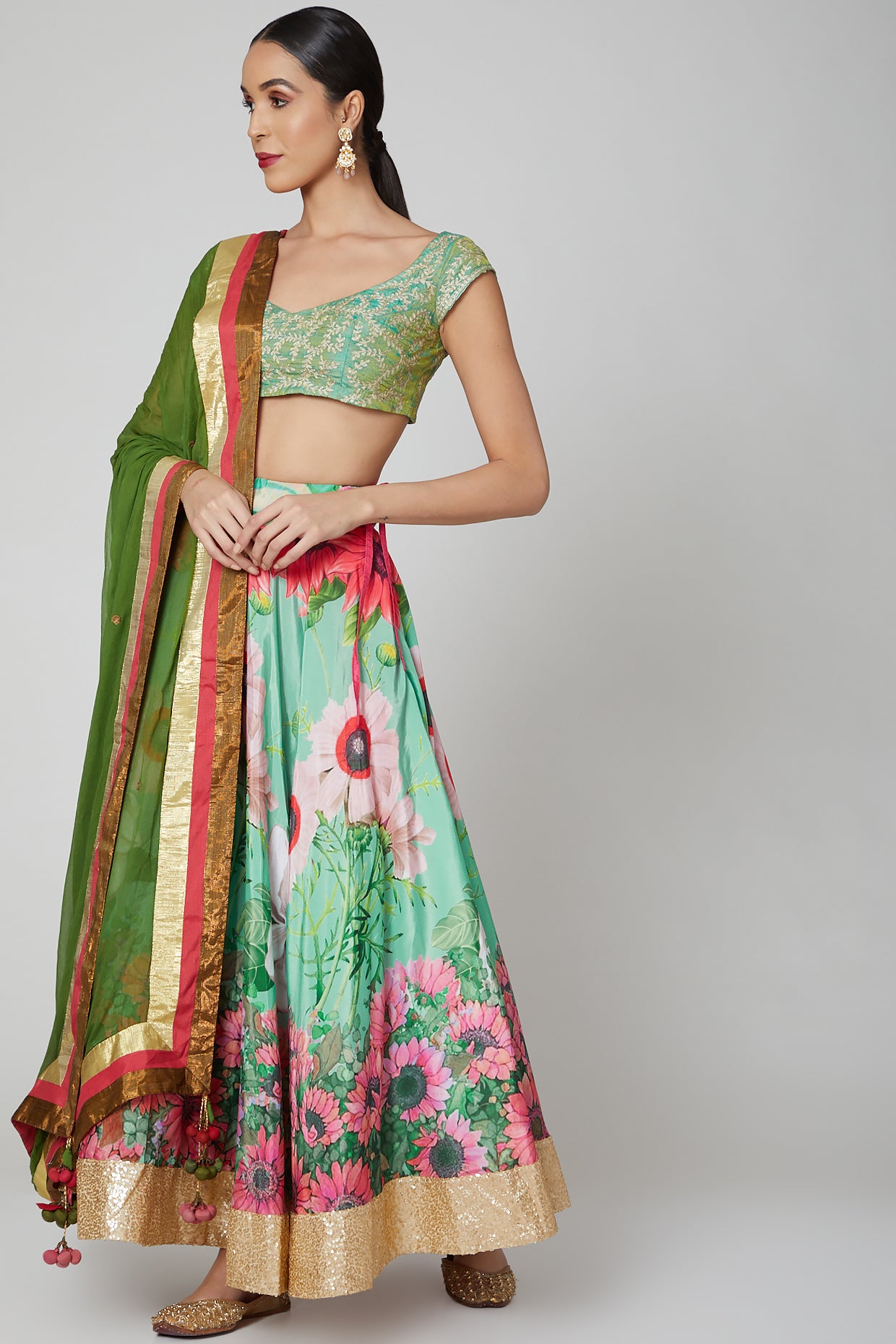 Pista Green Floral Lehenga Set