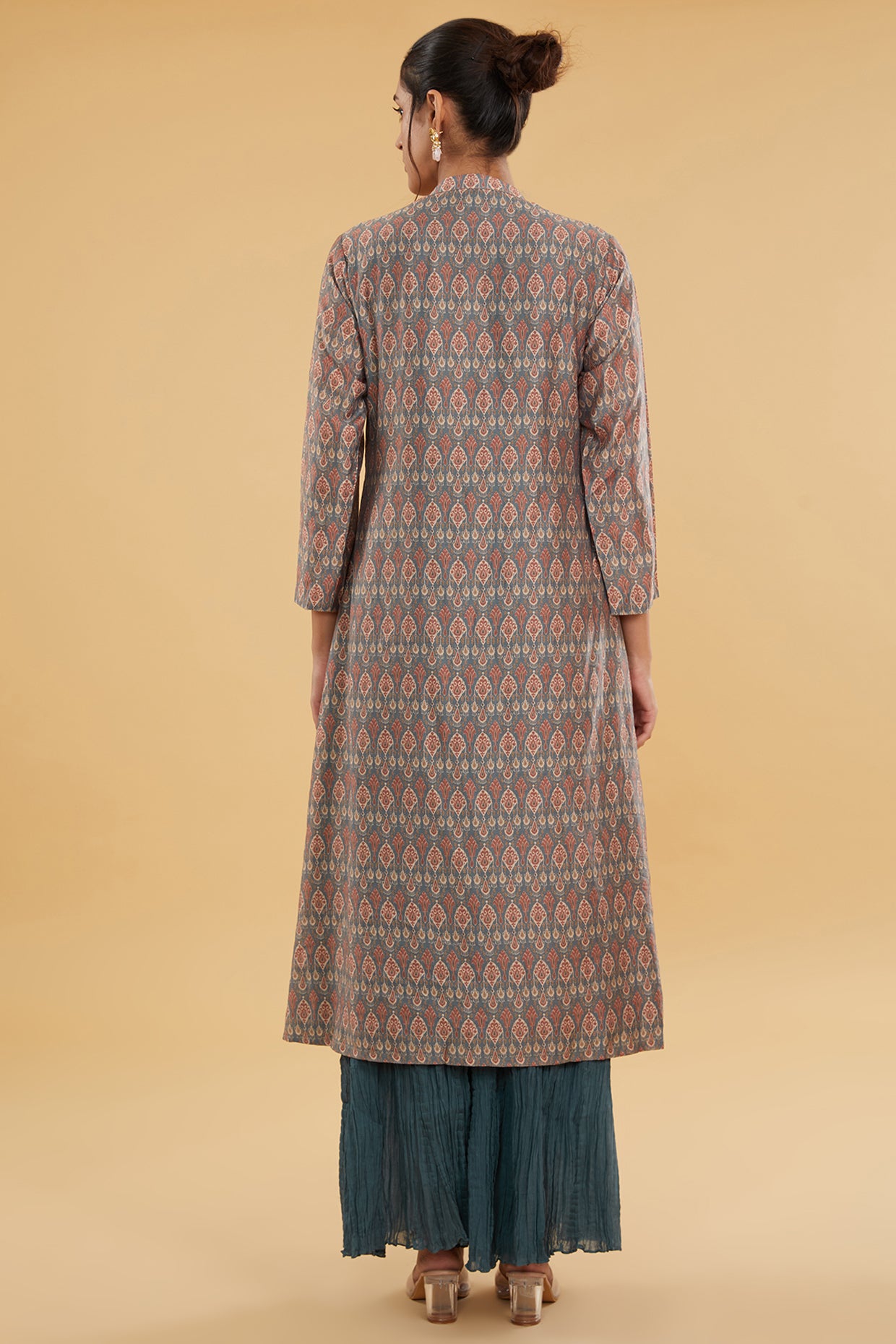 SKU:teal-blue-cotton-silk-floral-printed-kurta-set_XS