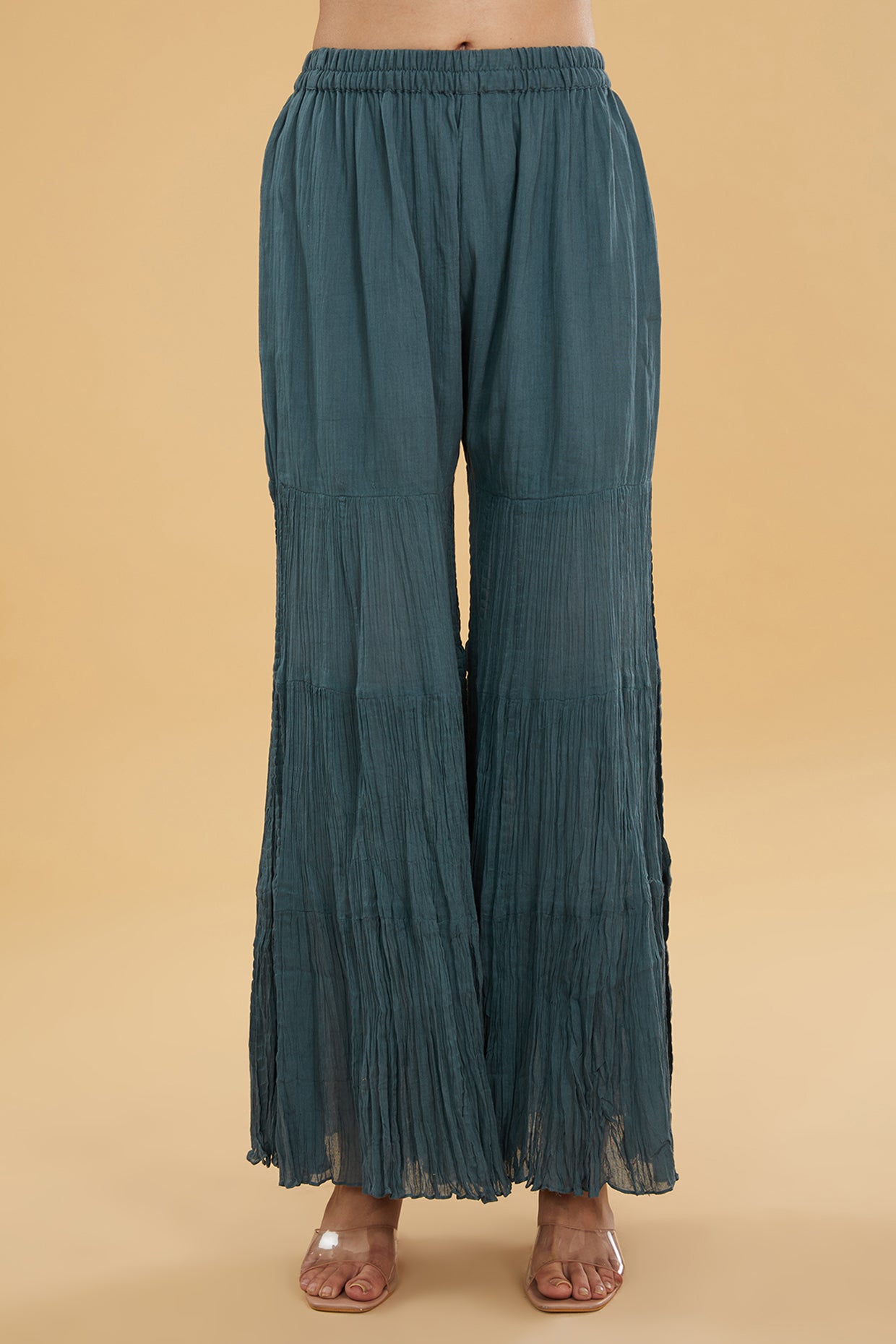 Featuring a teal blue kurta in cotton silk base with floral print. It is paired with a skirt and a dupatta. Accentuate it with statement jewellery and heels for a festive occasion or pooja ceremony.